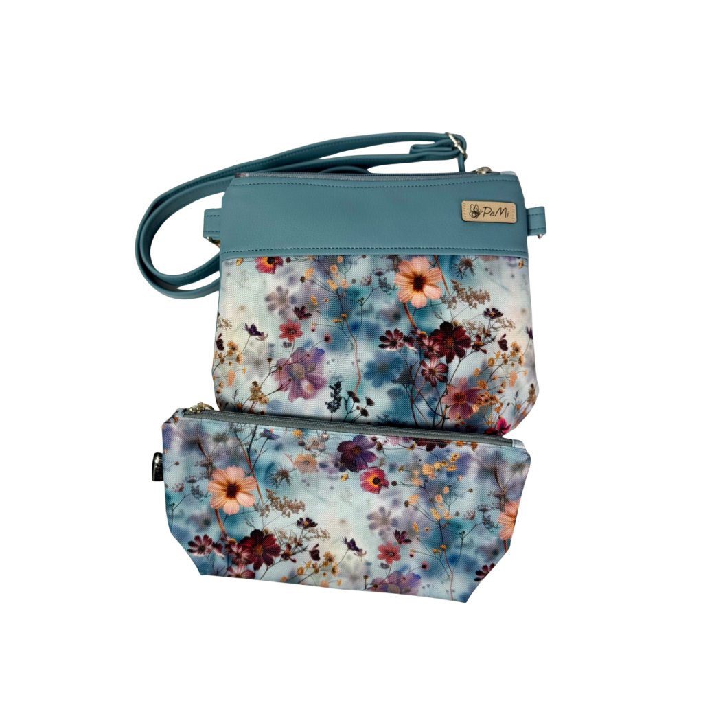 Kosmetická taštička vel. M - květy na světle modré