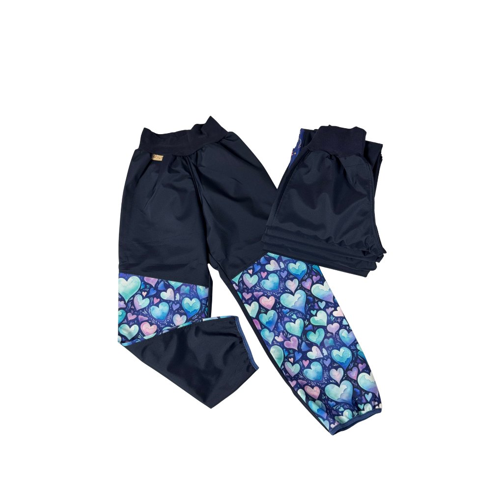 Letní softshellové kalhoty - tmavě modré se srdíčky