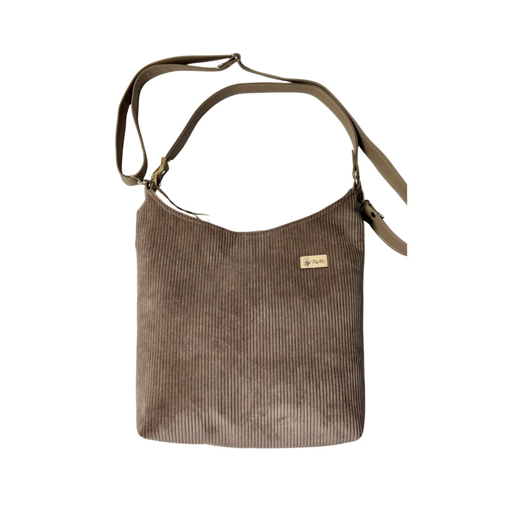 Ručně šitá velká crossbody kabelka z manšestru s bavlněnou podšívkou, prostorná a praktická pro každodenní nošení.