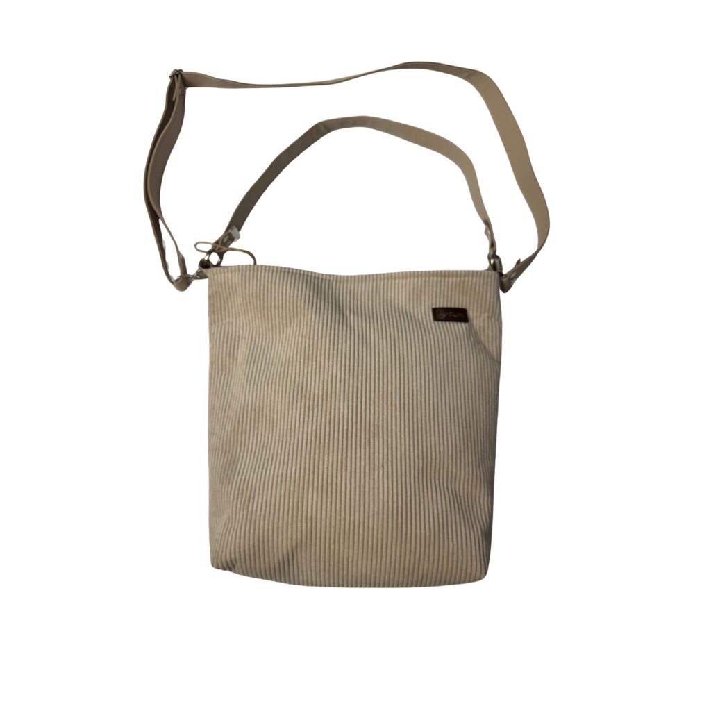 Ručně šitá velká crossbody kabelka z manšestru s bavlněnou podšívkou, prostorná a praktická pro každodenní nošení.