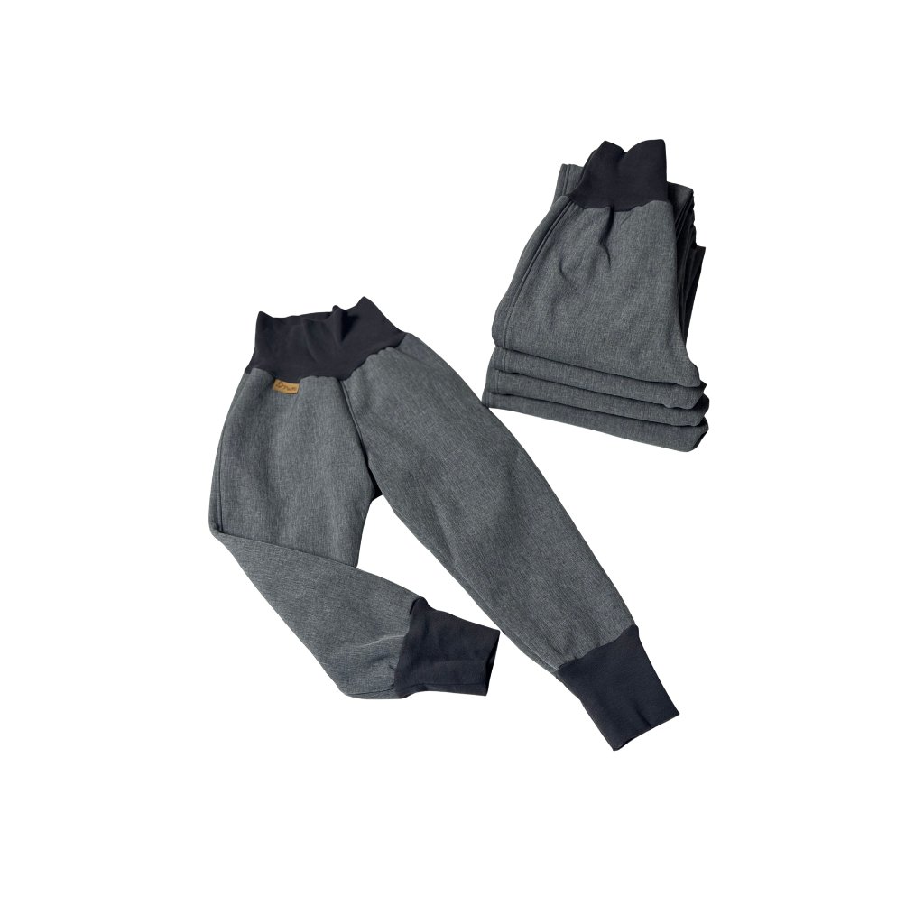 Ručně šité zimní softshellové kalhoty s fleecovou podšívkou, které udrží děti v teple a pohodlí i během chladných dní.